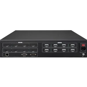 2U Chassis, 8 channels HDMI input, 8 channels HDMI output, HDMI Type A connector, HDCP1.4, HDMI1.3, EDID, Max resolution 1920*1080@60hz, LCD/LED/DLP Supported